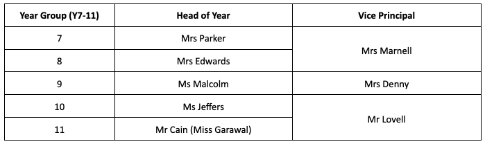 Parents should contact their child’s Head of Year, especially regarding social media or peer relationship concerns. Contact details and safeguarding resources are available on the school website.