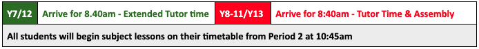 Changes to normal School Operations: Delayed start on Wednesday 15th October