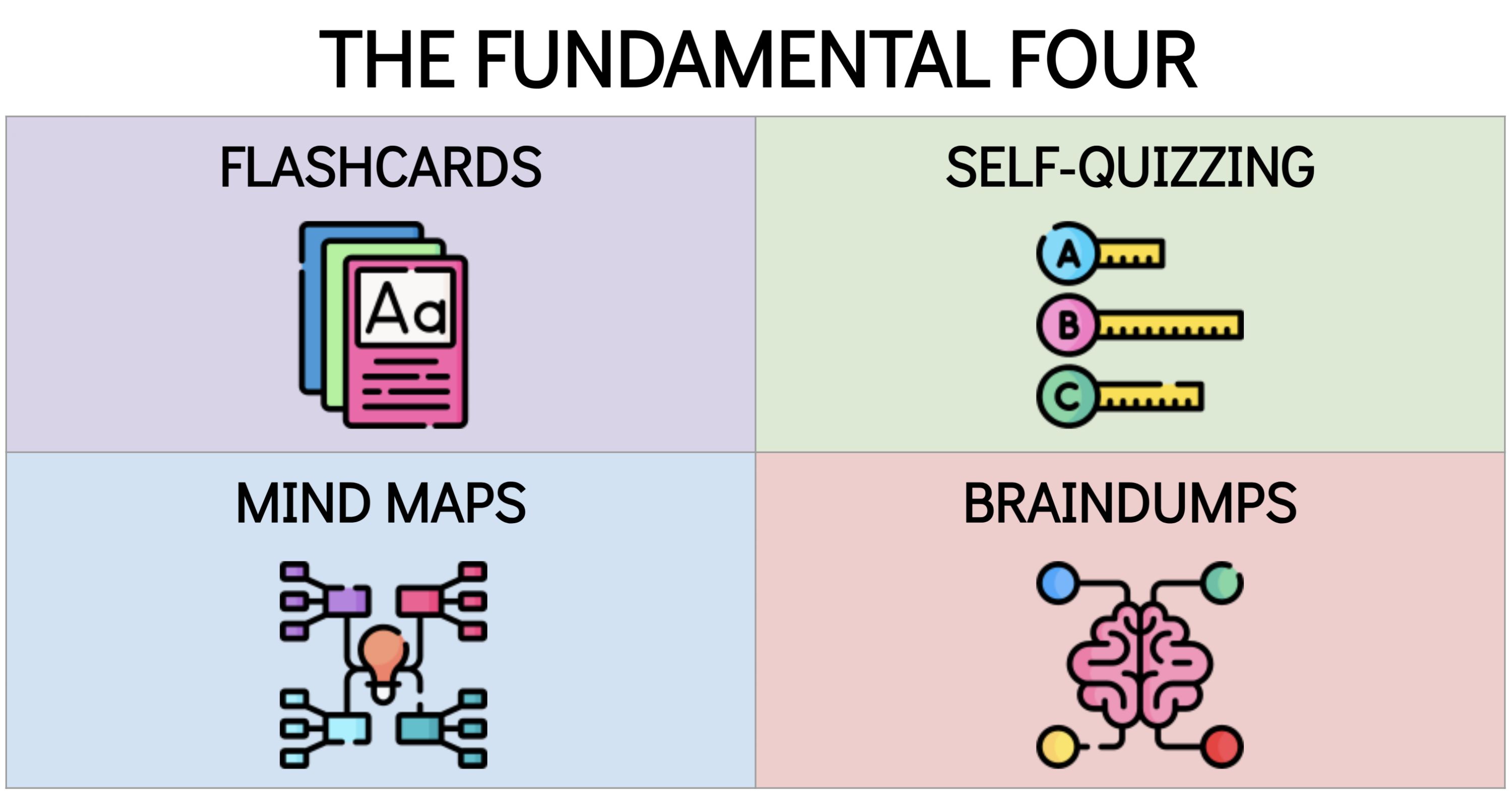 In preparation for these assessments, students receive clear guidance on what to revise, along with access to high-quality revision materials. We actively encourage all learners to use the Fundamental Four revision strategies to help them retain and apply knowledge effectively: